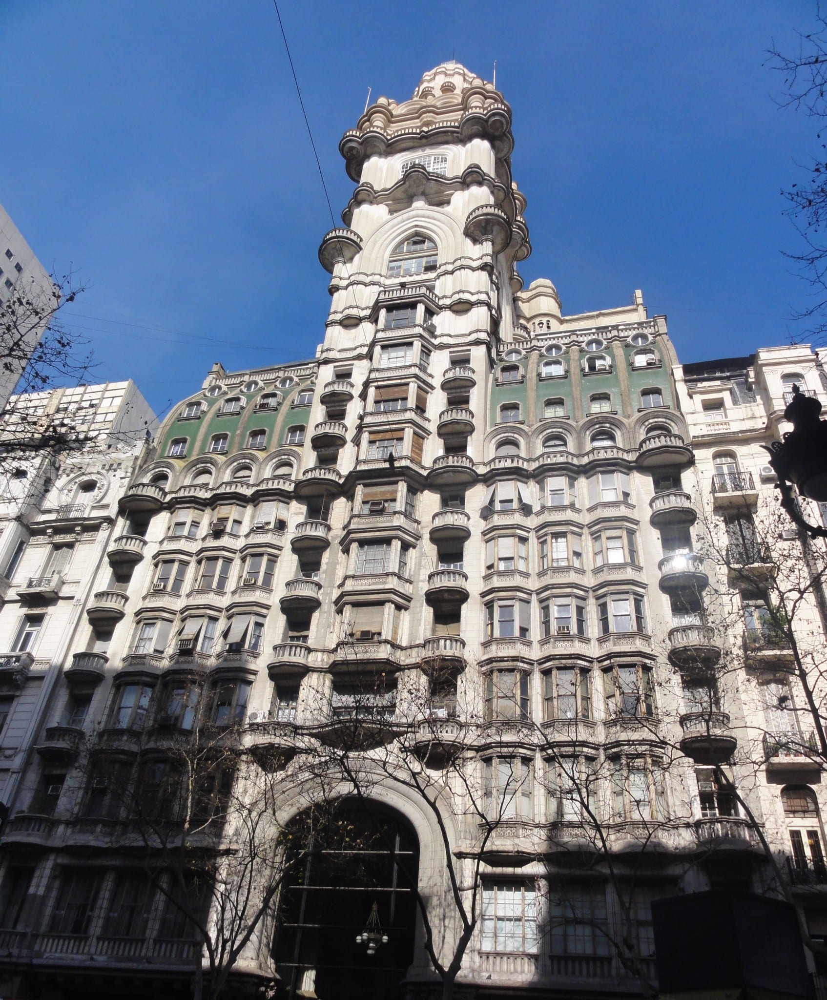 En 1923 nació este edificio inspirado en La Divina Comedia de Dante Alighieri; construcción cuyos 22 pisos remiten a las 22 estrofas que tiene cada verso. A estos 22 se sumaron dos subsuelos y una cúpula. De esta manera, el edificio alcanzaba una altura de 90 metros. Aún así, faltaban diez metros para llegar a los 100, número que representa la cantidad de cantos totales de la obra, por lo que se agregó un faro giratorio. Claro que el faro no se trató de un simple agregado, sus 300 mil bujías lo hacían visible desde el Uruguay. Tampoco es un detalle menor que, gracias a estos 100 metros alcanzados, el Barolo fuese por 13 años el edificio más alto de la Ciudad de Buenos Aires. Incluso, una fabrica propia lo abastecía de energía. En la década de 1920, esto lo convirtió en lo que hoy llamamos un “edificio inteligente”. La división general del palacio y de la Divina Comedia representan las tres partes de la creación de Alighieri: infierno, purgatorio y cielo.
