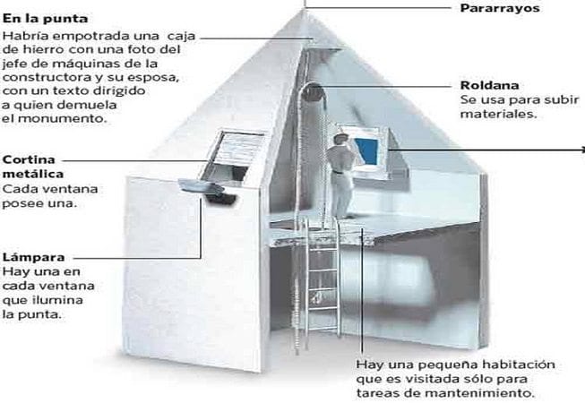El arquitecto argentino Alberto Presbich fue, por pedido del intendente Mariano de Vedia y Mitre, el encargado de proyectar el monumento de 67,5 metros de alto. Con respecto a esa medición, si bien comúnmente se cree que la altura del Obelisco tuvo que adaptarse a la reglamentación vigente, el hijo del arquitecto Presbich, Horacio Rex Presbich, afirma que no existía restricción alguna de altura, y que su padre actuó de acuerdo a su criterio profesional. La estructura contaba también con un ápice con cuatro pequeñas ventanas abiertas a los cuatro puntos cardinales y 170 toneladas de peso coronadas por un pararrayos. Pero quizás el más interesante de todos fue el record en tiempo de construcción: el Obelisco se levantó en tan sólo 60 días. El secreto estuvo en la utilización del llamado Cemento Incor, de rápido endurecimiento; además de una construcción establecida por secciones de dos metros, facilitando así el volcado del hormigón. De allí que no estemos ante una obra monolítica (constituida por una sola pieza de piedra); sino varios bloques huecos. El Obelisco porteño tiene una puerta situada sobre su cara oeste con acceso a una escalera marinera de hierro con 206 peldaños. No apto para perezosos…