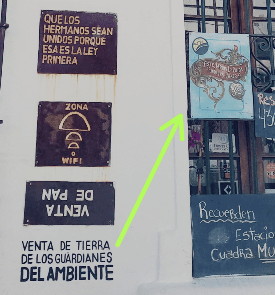 - Quilapan pinta una escritura en la pared del frente que dice que allí se vende tierra de los GUARDIANES DEL AMBIENTE. Excelente, muchas gracias Quilapan!