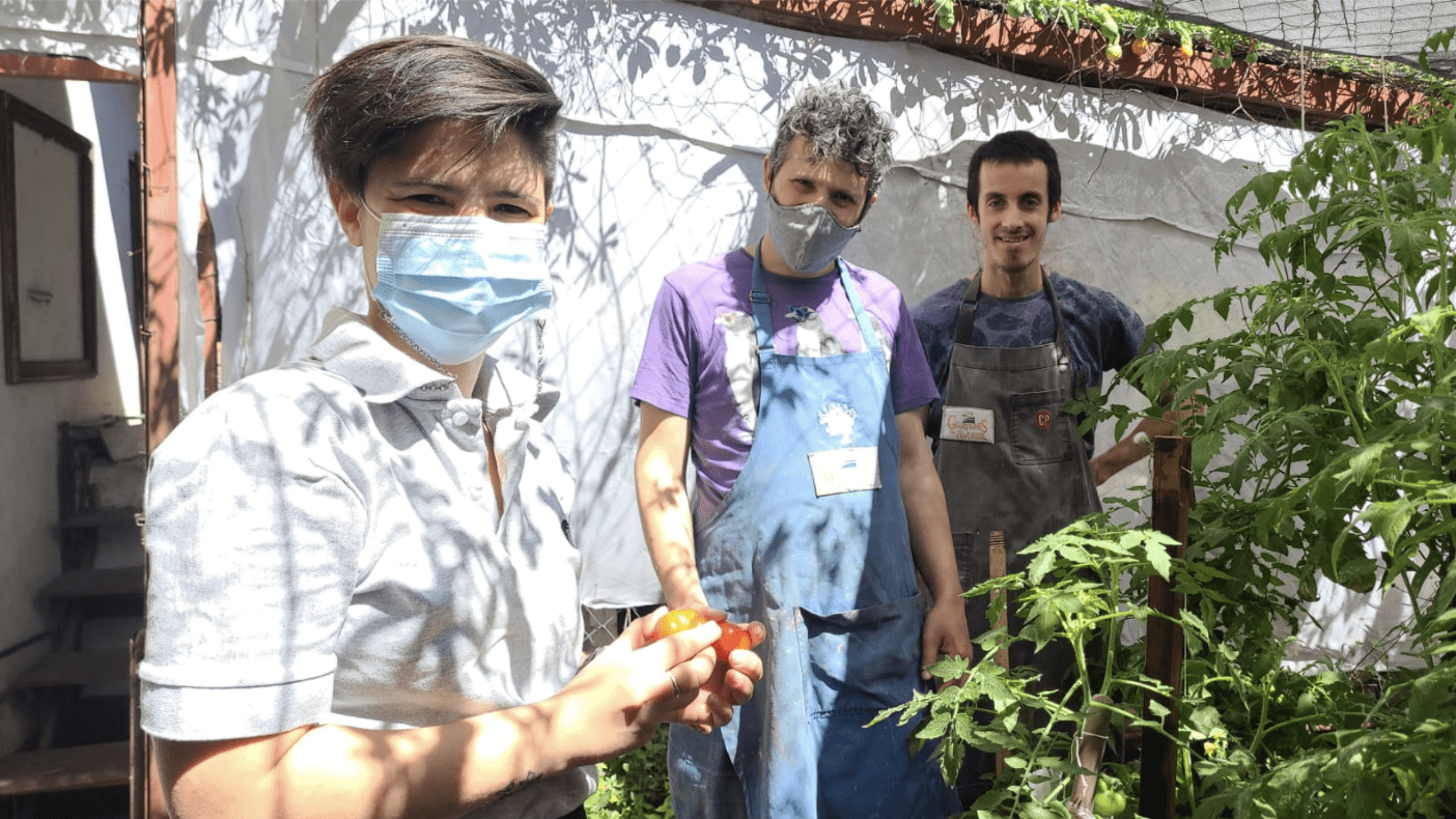 - Colocamos cartel en el frente fileteado porteño que dice ESTE JARDÍN LO CUIDA FUNDACIÓN CHACRAS Y VOS.