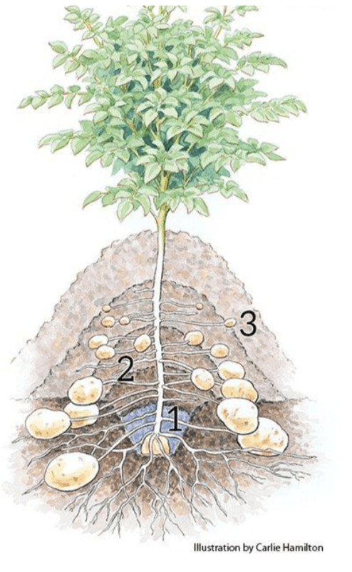 y se sigue llenando de tierra a medida que la planta crece. En el futuro, en todo el recorrido de la planta generará raíces y bulbos ( papas ) que favorecerá la cosecha de muchas papas. - Este mes se envió material de estudio para curso de PROHUERTA a Youssou.