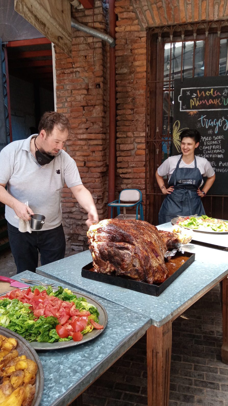 ¿El menú? ¡Una delicia! Empezamos con empanadas salteñas de entrada, luego llegó la pata de vaca al horno de barro flambeada con alcohol, y para acompañar, unas deliciosas papas rotas y ensalada mixta.