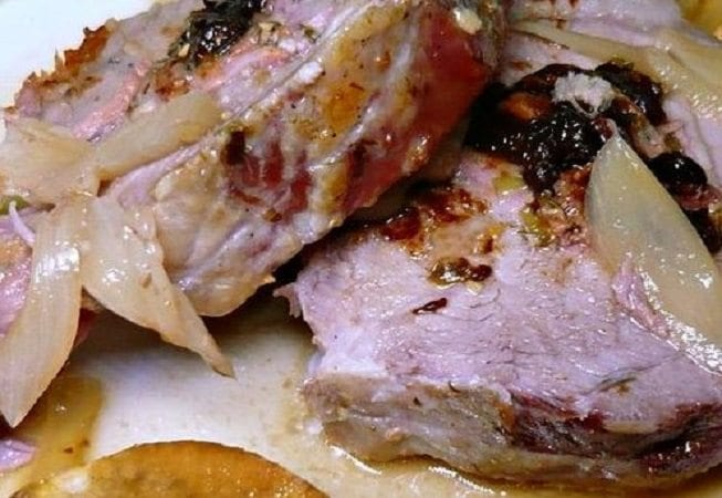 Ahora sí, salamos la bondiola (verá como ya comenzó a tomar un color doradito) y la condimentamos con pimienta negra y romero. Finalmente, incorporamos las ciruelas y coronamos con todo el dulzor de la sidra. Mándele toda la botella con confianza y lleve a hervor bajo durante una hora y media. Eso sí, que sea con la olla semitapada, cosa de que el vapor generado ayude a tiernizar la bondiola. Vaya pispeándola de vez en cuando y gire la carne para una cocción pareja. Pasado ya el tiempo estimado, destape y deje que se reduzca la salsa, así consigue más cuerpo y un sabor más concentrado.