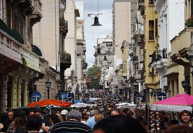 Así que, ya llegado el 1800, mejor agudizar los sentidos y no andar desprevenidos, pues, a pocas cuadras de “el Alto”, el “transito” se empieza a espesar. En especial, cuando la línea de tiempo nos encuentre transitando allá por 1806 y 1807. Aunque de carretas no parece ir el asunto; sino de una avanzada peatonal… ¡y a contramano! Sí, sí. Son los soldados ingleses que, a toda marcha y tras haber desembarcado en el sur, avanzan por el Camino Real hacia la Plaza Mayor. ¡Y eso que la buena de doña Martina de Céspedes capturó unos cuantos en su pulpería! Por las dudas, preste atención a las alturas. Más precisamente, a las azoteas. Desde donde los vecinos andan tirando agua hirviendo para defender a la ciudad de los invasores (¡no vaya a ser que se salpique!) y rebautizar, con toda su valentía, a la calle que nos compete: “Defensa”. Claro que aquel definitivo cambio de nombre se decretó un tiempo después, en 1845, y de la mano de Juan Manuel de Rosas. ¿Alguna duda sobre el federalismo que corre? Vea como todo el mundo anda luciendo la divisa punzó. Puro rojo a la redonda; así que nada de celestes en este tramo del camino. Hablando de Roma, ¿por dónde andamos? Dejamos atrás la calle Estados Unidos y continuamos la marcha hacia el sur, mientras las chimeneas comienzan a copar nuestros alrededores. Es que en este tramo de Defensa se fueron asentando las primeras industrias de la ciudad. Tras un pasado fabril basado en la producción de ladrillos y cañones, y en la posterior instalación de molinos harineros, llegaba el turno de las industrias de confitería. ¿Y quién fue el primero? Allá por 1837, en la esquina noroeste de Defensa y Carlos Calvo, don Carlos Noel instalaba su fábrica de confites “el Sol”. Todo un camino de ida en materia de dulces nacionales. Todo un tributo al esfuerzo de este inmigrante español que, tal vez sin saberlo, sería uno más en miles y miles.
