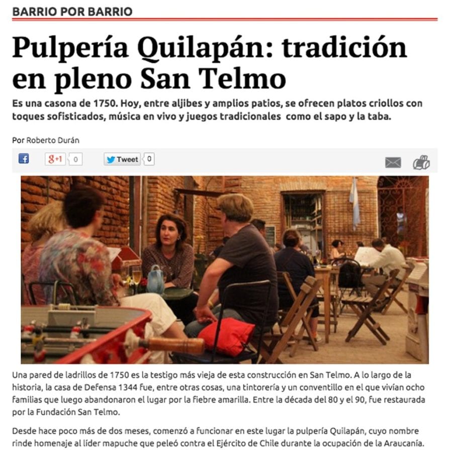pulpería Quilapán – Defensa 1344, Casco Historico, San Telmo 1143, Buenos Aires.