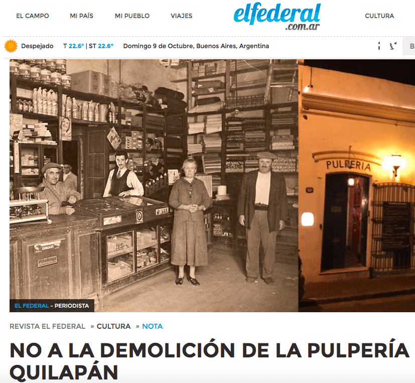 NO A LA DEMOLICIÓN DE LA PULPERÍA QUILAPÁN por El Federal