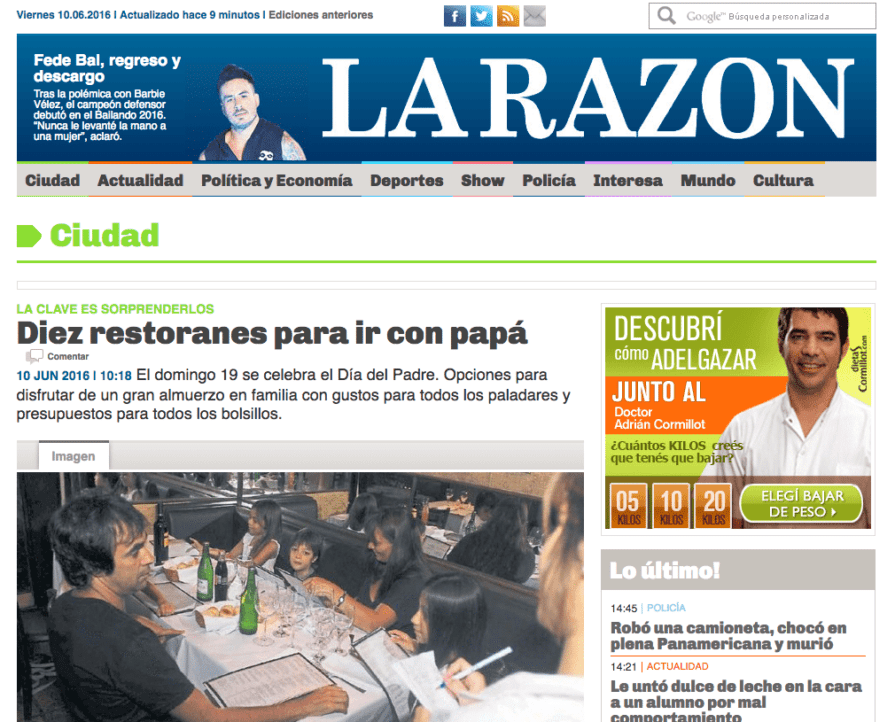 El domingo 19 se celebra el Día del Padre. Opciones para disfrutar de un gran almuerzo en familia con gustos