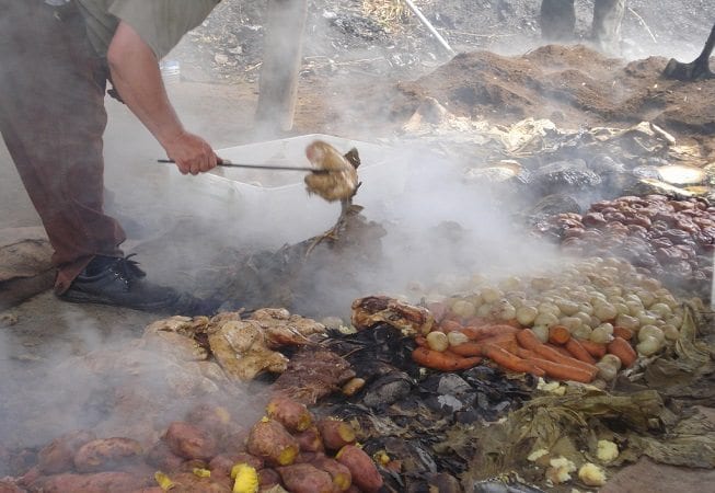 Si la adversidad pone a prueba el ingenio del hombre, los Mapuches (habitantes originarios de la Patagonia) sí que se las rebuscaron para hacerle frente a las hostilidades climáticas del sur: lluvias, nevadas y vientos . Difícil trasladar allí la imagen del hombre pampeano cociendo su asado a las brasas… ¡moriría en el intento de prender el fuego! Pero la imaginación mapuche superó la prueba ¿Para qué esforzarse en mantener la llama encendida a la intemperie si la solución estaba “bajo tierra”? Sí, allí donde también irían a parar los alimentos.