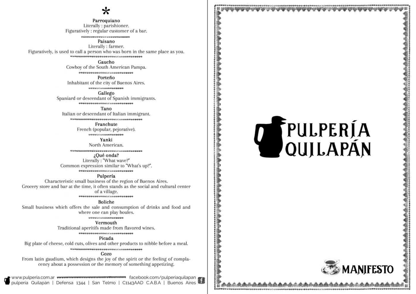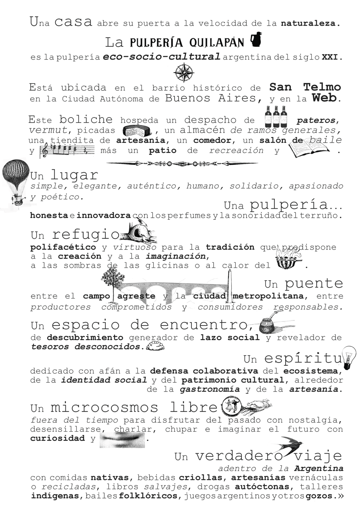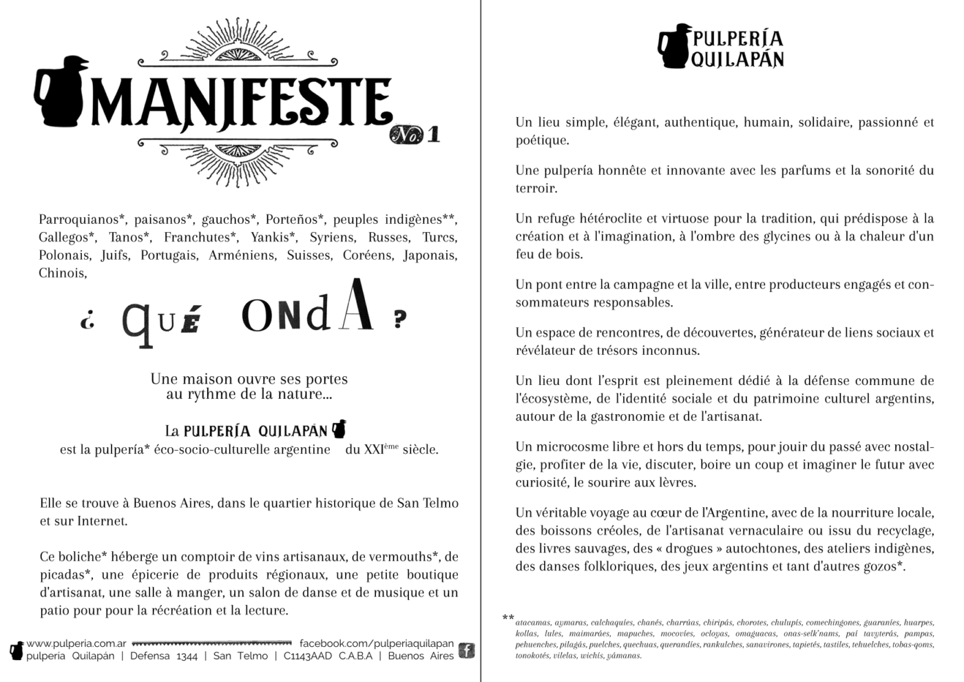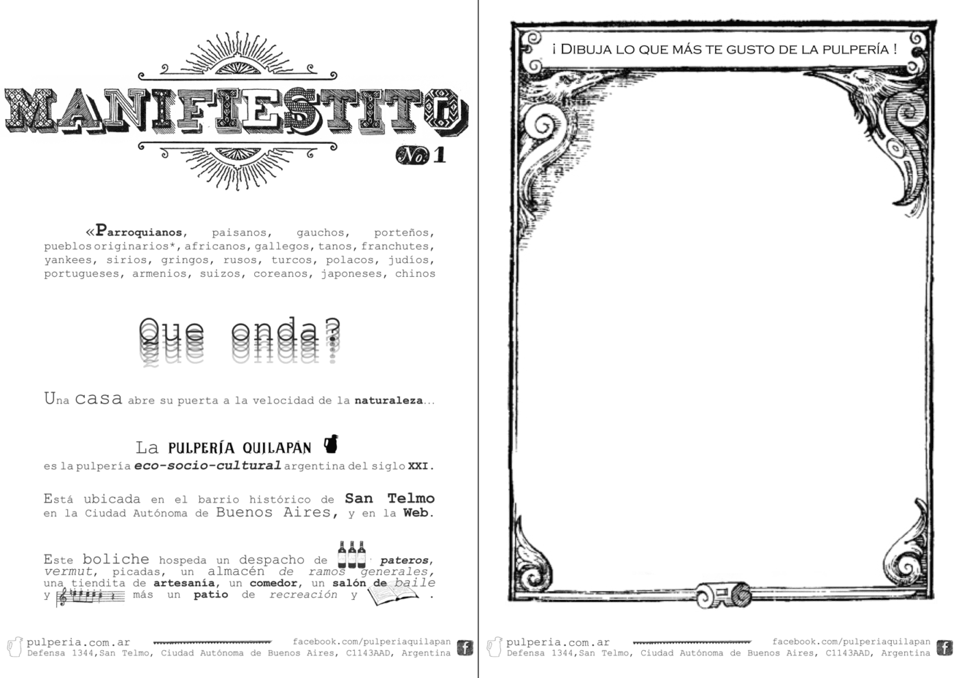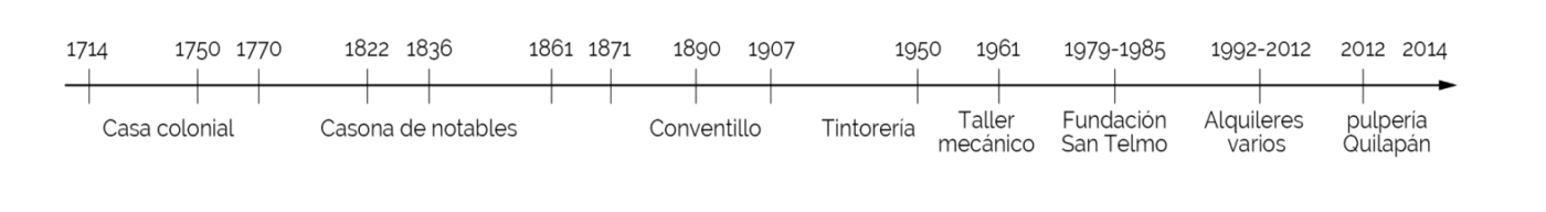 Historia Cronología de una Casona Colonial Historia de la casona 1714 – 2022 Ver documento de historia Breve biografía de los personajes que pisaron los adoquines de madera de la casona Ver documento biográfico Excavación Arqueológica Investigación Arqueológica Visita Virtual - Experiencia Immersiva Manifiesto Pulpería Quilapán Manifiestito Pulpería Quilapán Manifeste Pulpería Quilapán en Francais Manifesto Pulpería Quilapán en English