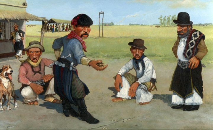 Juego criollo si los hay, la paisanada lo aprendió de los españoles y parece que ya los griegos andaban por ahí tirándole huesos al azar. Porque la mentada taba, no era otra cosa que un hueso astrágalo vacuno y cada gaucho solía tener la suya, adornada con detalles personalísimos.