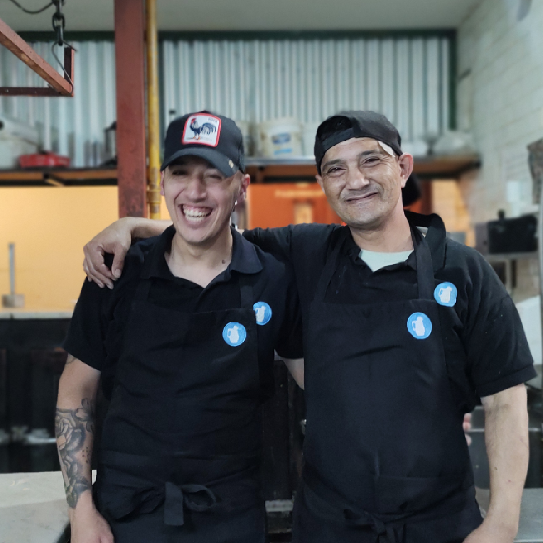Esperamos que estén muy bien, por acá tenemos nuevas buenas para contarles. Mire cómo lucen los pulperos con sus nuevos uniformes desde la cocina de Edgardo e Iván.