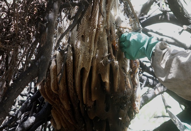 Norte de Salta, departamento de Santa Victoria Este. Allí, limitando con Bolivia, Paraguay y la provincia de Formosa. Allí, en el corazón del llamado Chaco argentino, donde la lluvia escasea durante buena parte del año. Allí, sí, allí, en esa porción del mapa no tan conocida ni visitada, alrededor de un 60% de la población es originaria. Y originaria, propia, su forma de vida, su lengua, su subsistencia ligada a actividades económicas ancestrales. No fue sino hasta el año 1902 que ingresaron los primeros ganaderos criollos y la mixtura de realidades comenzó a afincarse en el terreno. Desde que Juan Pearson se instaló allí en el 2007, la complejidad de tal realidad era tan evidente como necesario echar mano, planificación y mucho, pero mucho pulmón. Ante la inyección de dinero que la comunidad comenzó a recibir en forma de ayuda social, el juego capitalista aceitaba su funcionamiento al permitir a los pobladores adquirir alimentos a través del dinero; más sin producción de por medio. Sí, la ecuación no cerraba. Ni aún ofreciendo lo propio, lo que madre natura da y sus hijos, esfuerzo y dedicación mediante, son capaces de recoger: la miel.
